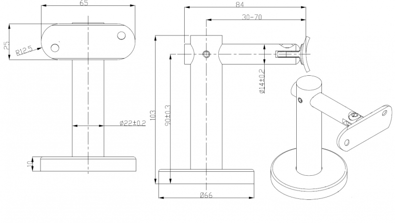 316 Adjustable wall to handrail bracket with 50.8mm round cradle. NATA approved Satin