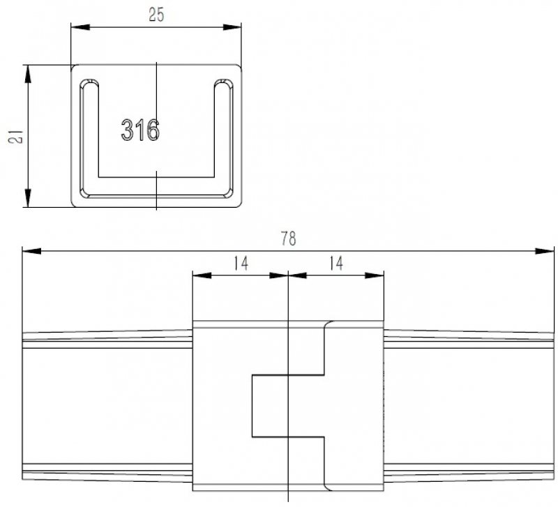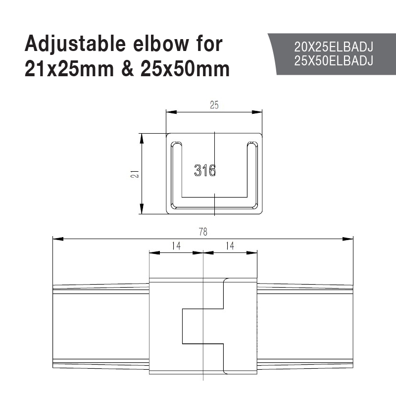 316 21x25mm Rectangle Adjustable Elbow. Mirror