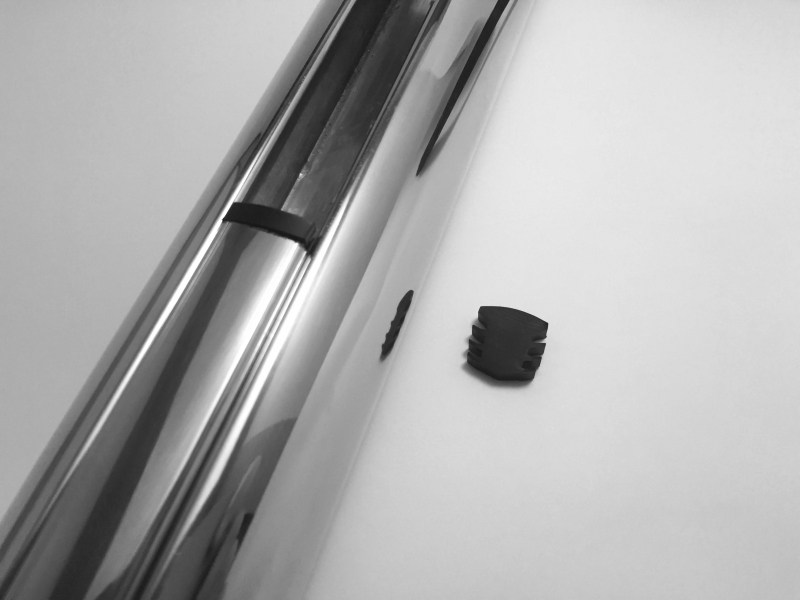 Infill spacer for round slotted tubes. Tough UV PE that matches the curvature of the tube. Can go between stainless steel infil strip and glass. 5mm thick pieces and sold in packets of 50.