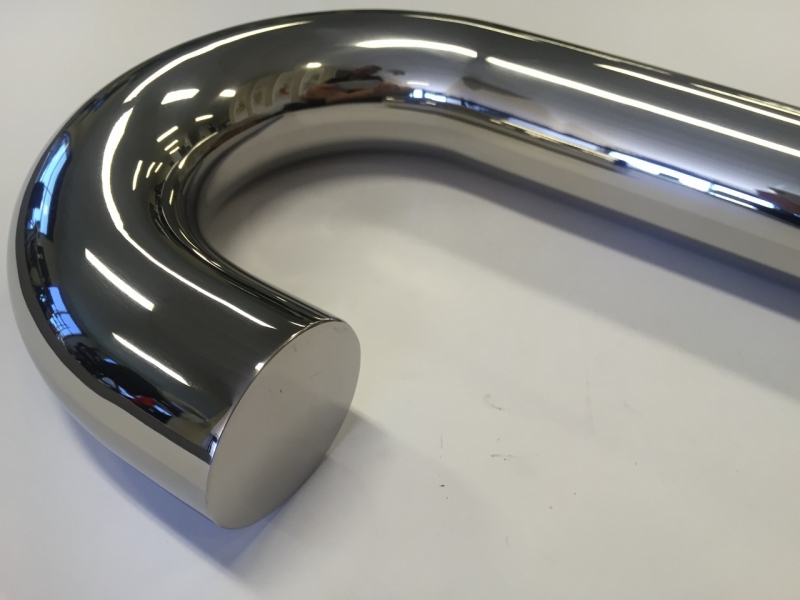 316 180 degree bend with extended leg for stairs in 50.8mm round tube. End cap welded on. Mirror