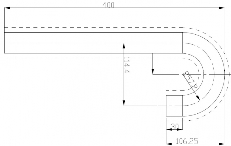 316 38.1mm round Bend 180 deg with extended leg to 400mm. Mirror