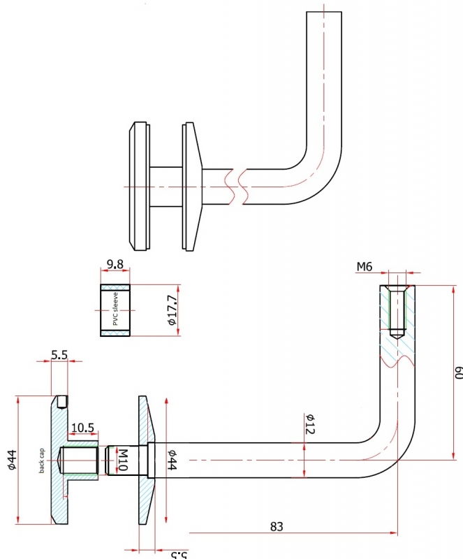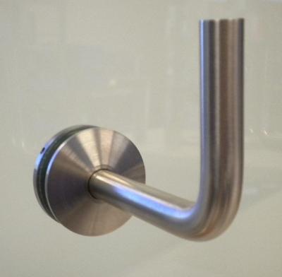316 Glass Handrail Support - 44mm diameter - for 12mm glass. Cradles optional. Satin.NATA approved