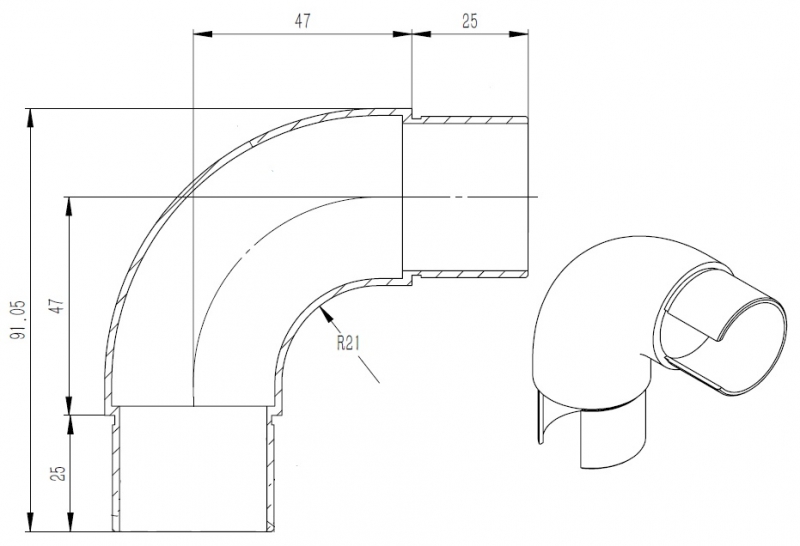 Home >> Components >> Fittings - For Tubes And Glass >> Mirror To Fit 38.1mm Round Tube >> 316 Flush Joiner - Radiused 90 Deg. Bend To Fit 38.1mm Round Tube