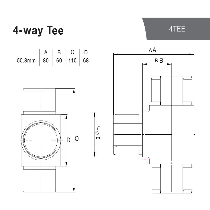 4TEE50M 316 Flush Joiner - 4 way TEE to fit 50.8mm Round Tube LOGIN TO SEE PRICE