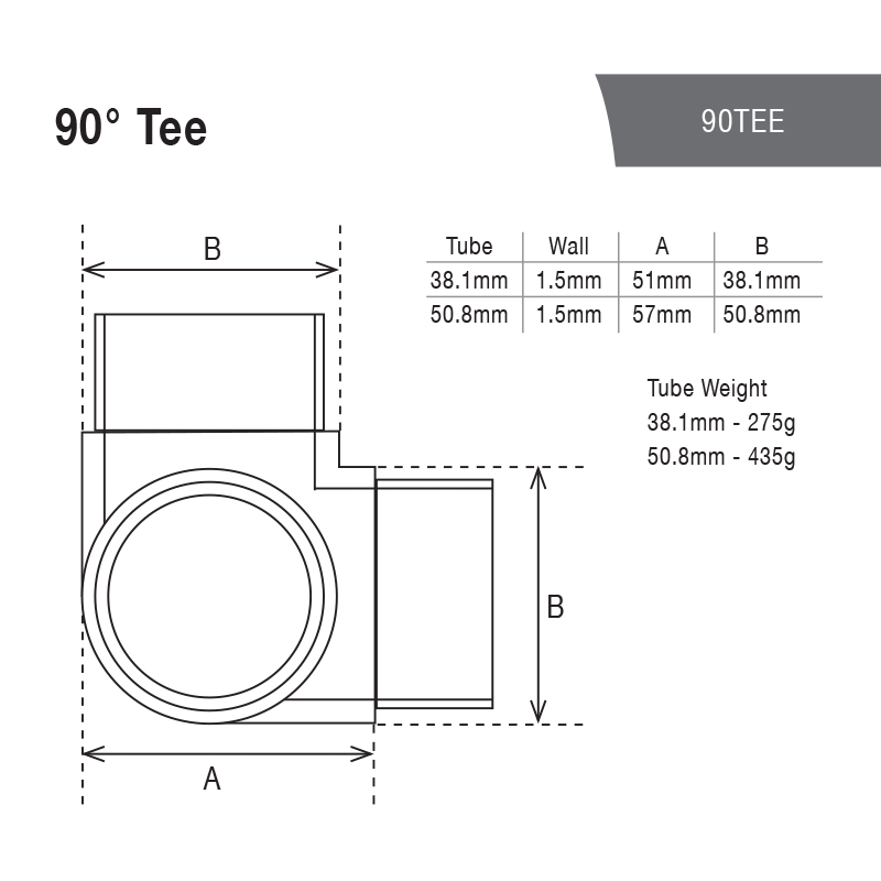 316 Flush Joiner - 90 Deg. Tee To Fit 38.1mm Round Tube