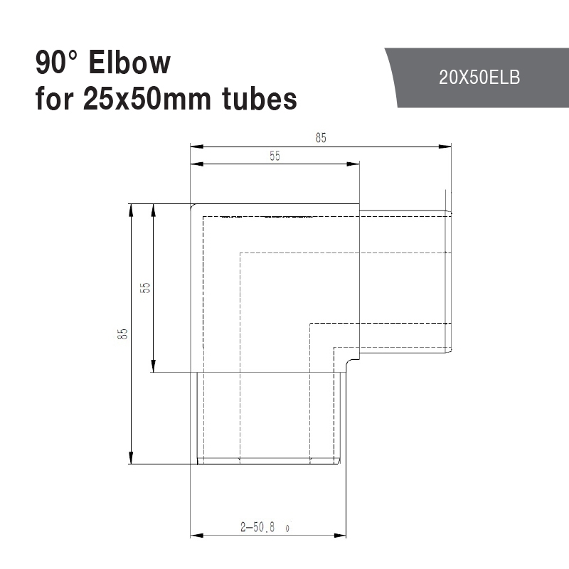 316 Elbow for 25.4x50.8mm rectangle tube. With slot all the way through.. Mirror