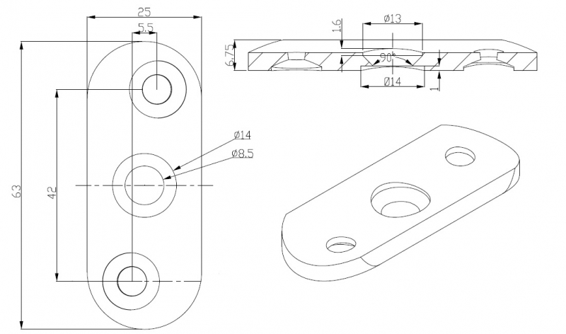 316 Cradle stems and for 50.8mm handrail. With M6 screw hole. Satin