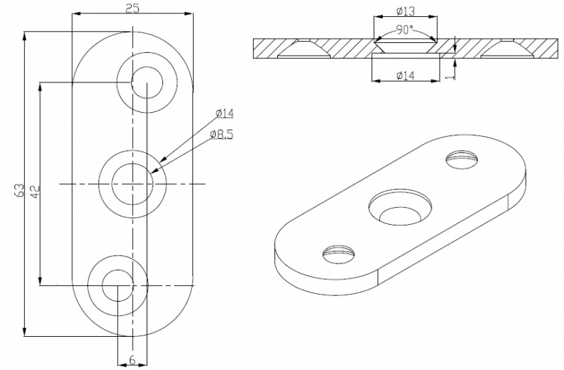 316 Flat Cradle Stems And For Square Or Rectangle Tube. With M6 Screw Hole. Satin