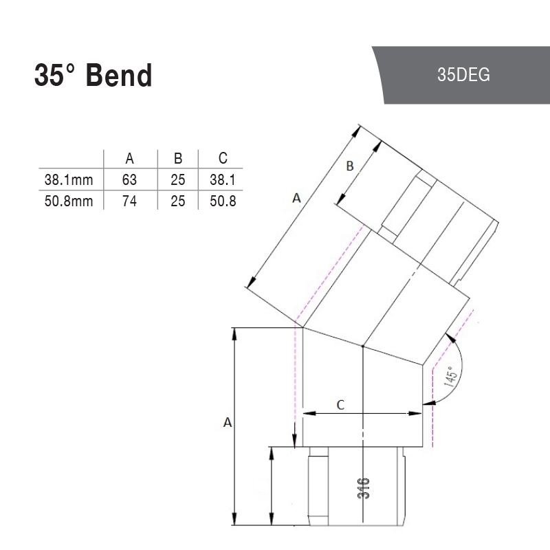 35DEG38M 316 35 degree bend for 38.1mm tube. Mirror LOGIN TO SEE PRICE